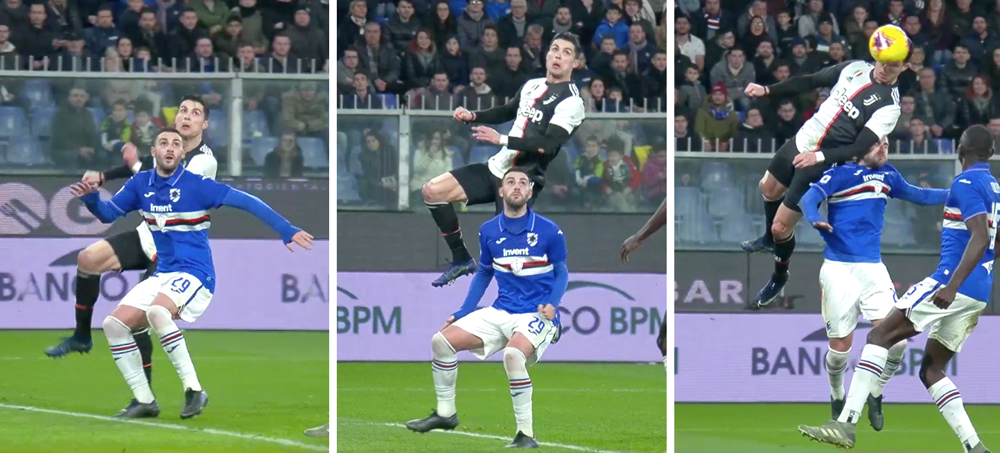 In a similar way, the cross towards Ronaldo defines the timing of his jump. And as a result, his header decides the position, moment, direction and speed of the dive of the goalkeeper, with the objective of making the save.