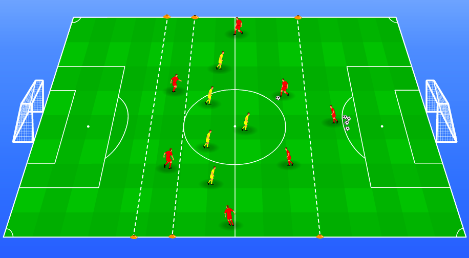 - the attacking midfielders of the offensive team are in a section behind the opponent's midfield
