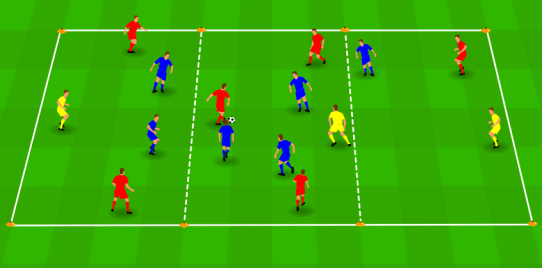 In total 6v6+3 is playedThe field is divided into 3 sectionsA neutral player is in each ...